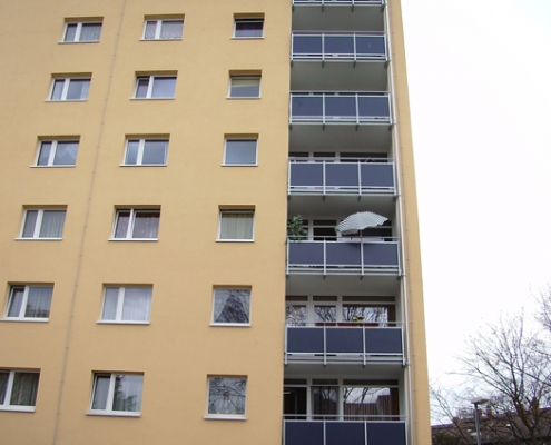 Glasfassade (Scheiben mit Siebdruckmuster) hinterlüftet